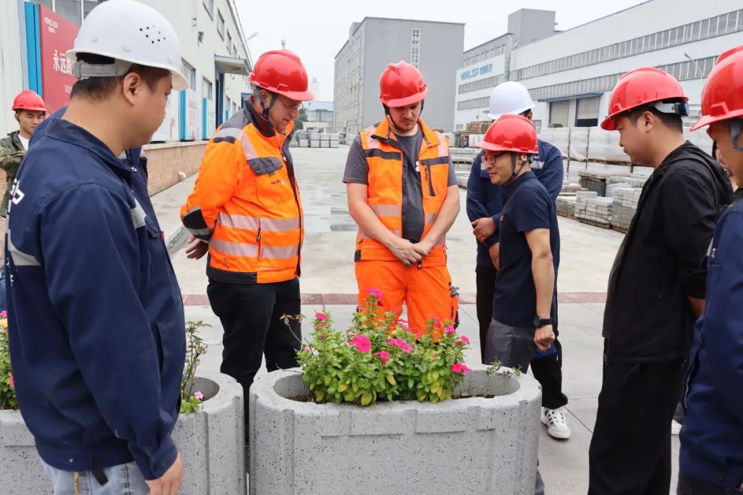我司中高層領(lǐng)導(dǎo)陪同德國專家一行先后參觀了公司展廳、生產(chǎn)現(xiàn)場,實地查看了公司全自動化砌塊生產(chǎn)線-德國海斯RH2000-4、仿石材精品深加工設(shè)備和仿石材產(chǎn)品。